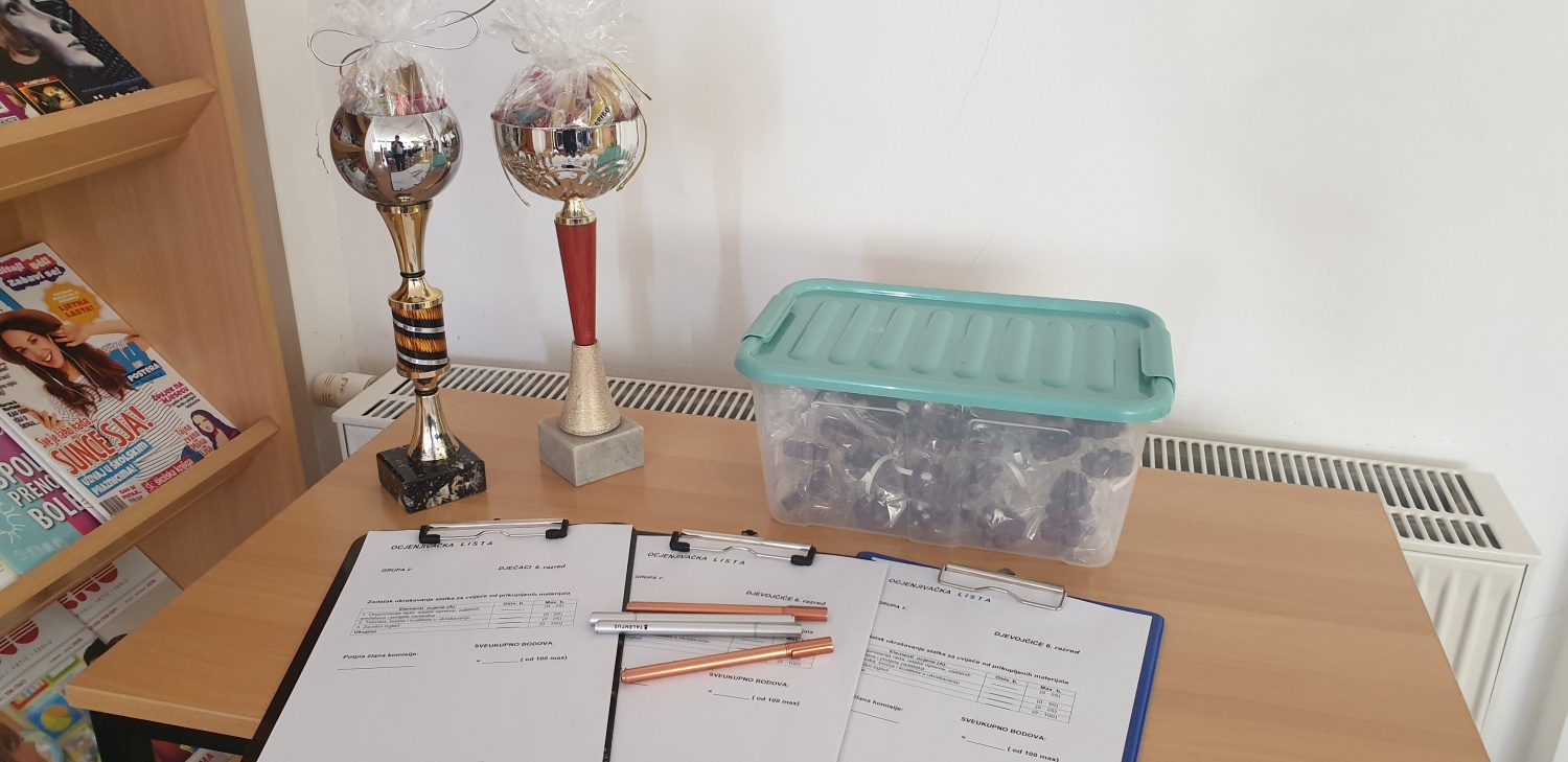 12:15 – 13:00 - Natjecanje učenika 6. razreda (dječaci protiv djevojčica, ukrašavanje stalka za biljke od prikupljenog otpada) Blaženka Budimir struč.spec.ing.sec i žiri u sastavu (pedagoginja, knjižničar i 3 član po dogovoru na licu mjesta),